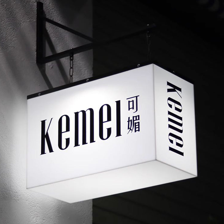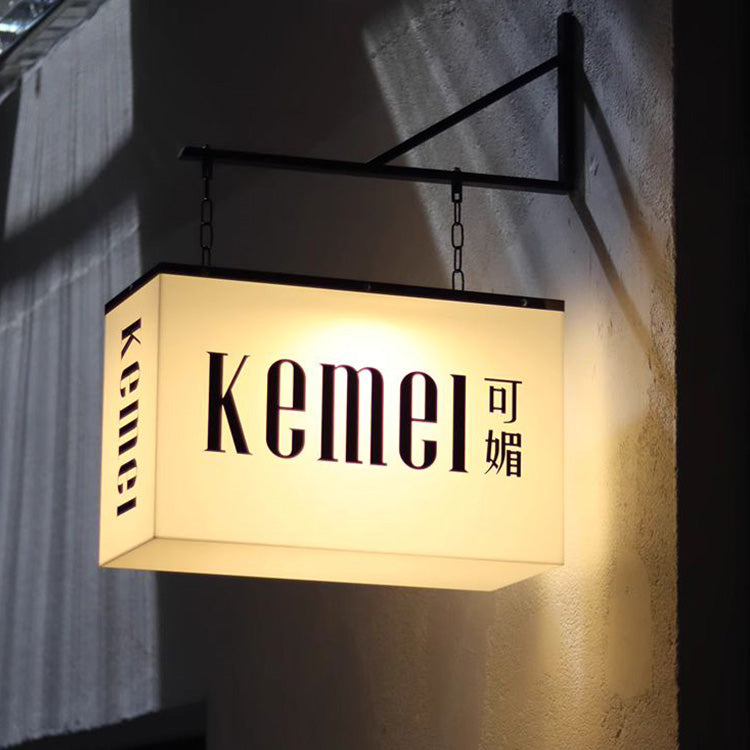 Enhance your brand's visibility with our custom 5-sided acrylic signs, featuring an iron framework for wall-mounted display. These unique signs allow you to showcase your logo or custom graphics on high-quality acrylic, providing a striking and illuminated representation of your brand.