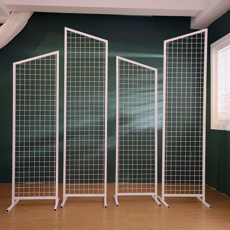 Grid mesh frame frame backdrop is a very good background for wedding decoration.This diamond-shaped wedding background is very beautiful and Perfect for indoor or outdoor use,It is very easy to assemble and transport, and, because it is made of metal, it is not easily damaged.You can decorate the top with balloons and flowers, or you can hang neon lights in the middle to add atmosphere to your party, and of course, you can hang acrylic panels or other props! this grid mesh frame backdrop is sure to make your big day even more memorable.