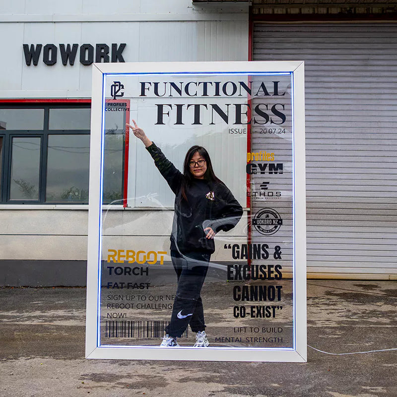 Magazine Vogue Photo Booth Panel is a new product for 2025. It features a detachable design, and the transparent acrylic cover at the front can be customized with different themes. People can stand behind it for photos, just like a magazine cover. It is perfect for weddings, birthday celebrations, corporate annual meetings, and industry exhibitions.