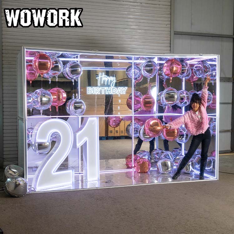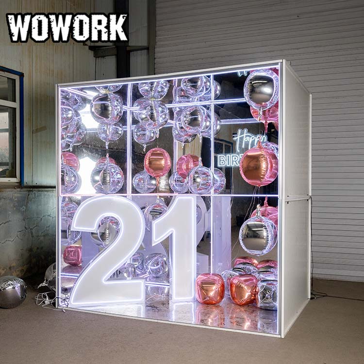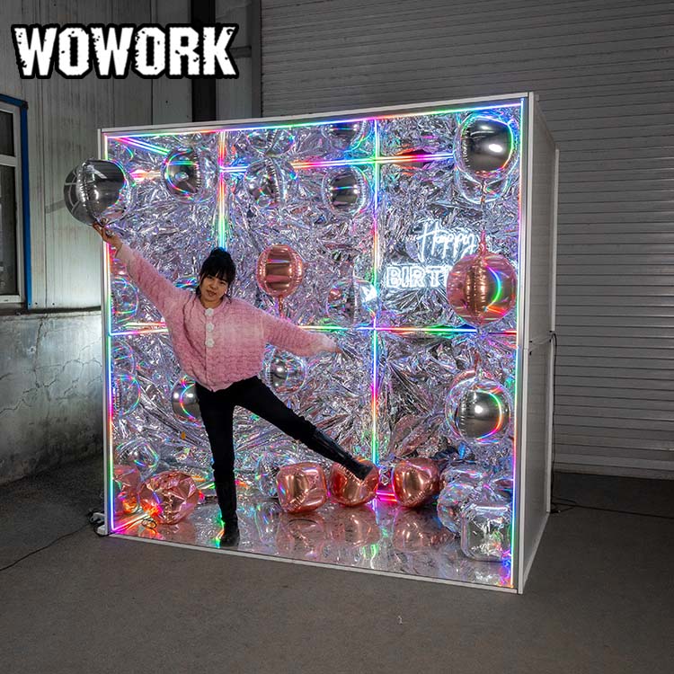 The RGB infinity mirror abyss photo booth is the most popular photography art room wall of 2025. It features a detachable design for easy transport and can be freely assembled into large, medium, or small sizes. Made of metal, it is sturdy and durable, with controllable lighting effects.