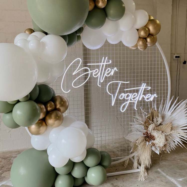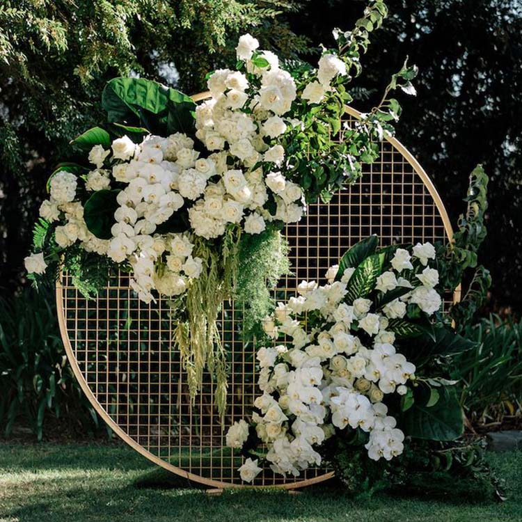 wire mesh backdrop stand is a very good background for wedding decoration.Perfect for indoor or outdoor use,It is very easy to assemble and transport, and, because it is made of metal, it is not easily damaged.You can decorate the top with balloons and flowers, or you can hang neon lights in the middle to add atmosphere to your party, and of course, you can hang acrylic panels or other props! this wire mesh backdrop stand arch is sure to make your big day even more memorable.